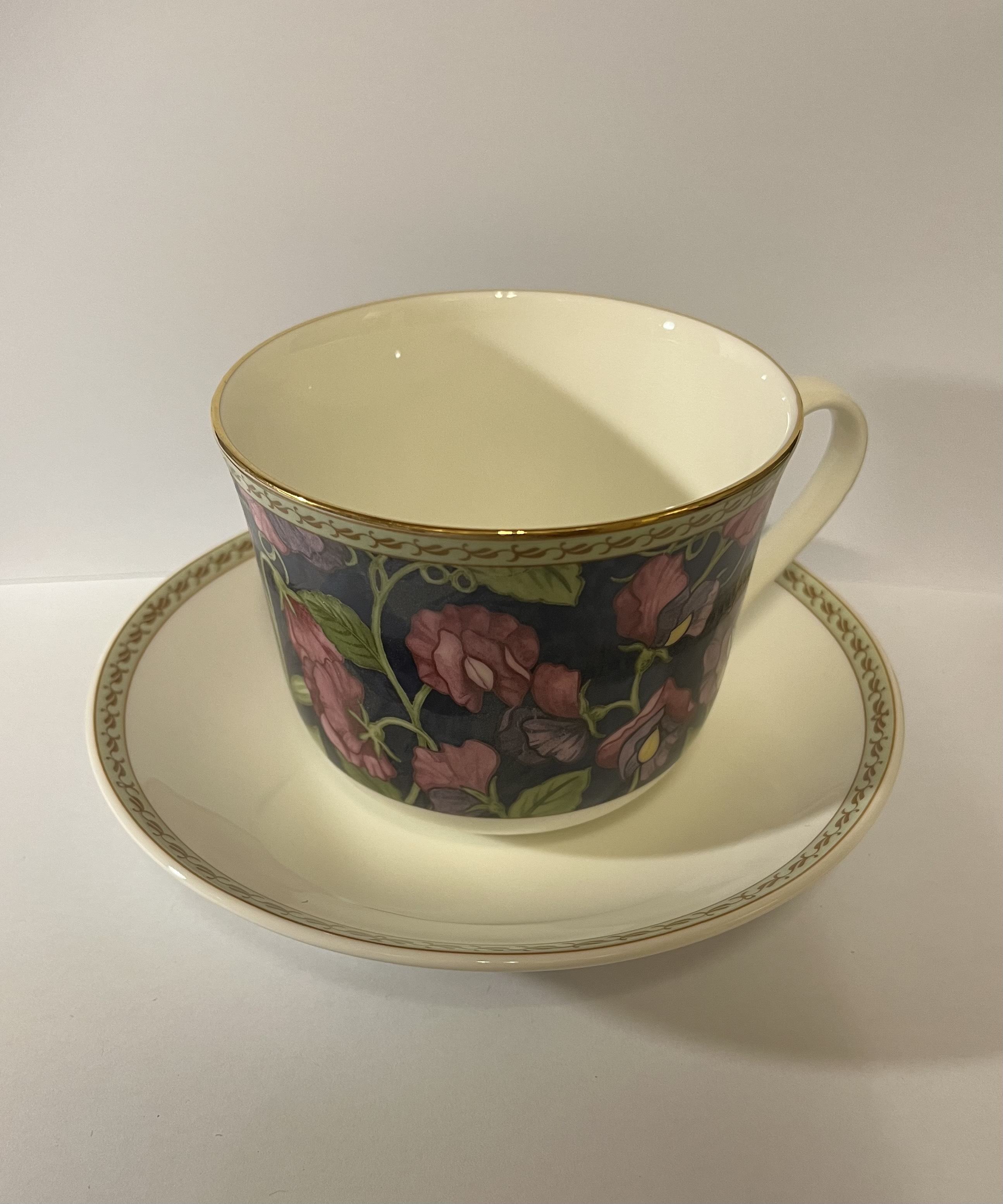 Lekker og delikat tekopp med fat fra Roy Kirkham med fugledesign. Settet er laget av benporselen og er perfekt for de som liker å drikke av tynne kopper. Koppen rommer 0,45 liter og er stor og god å holde i.