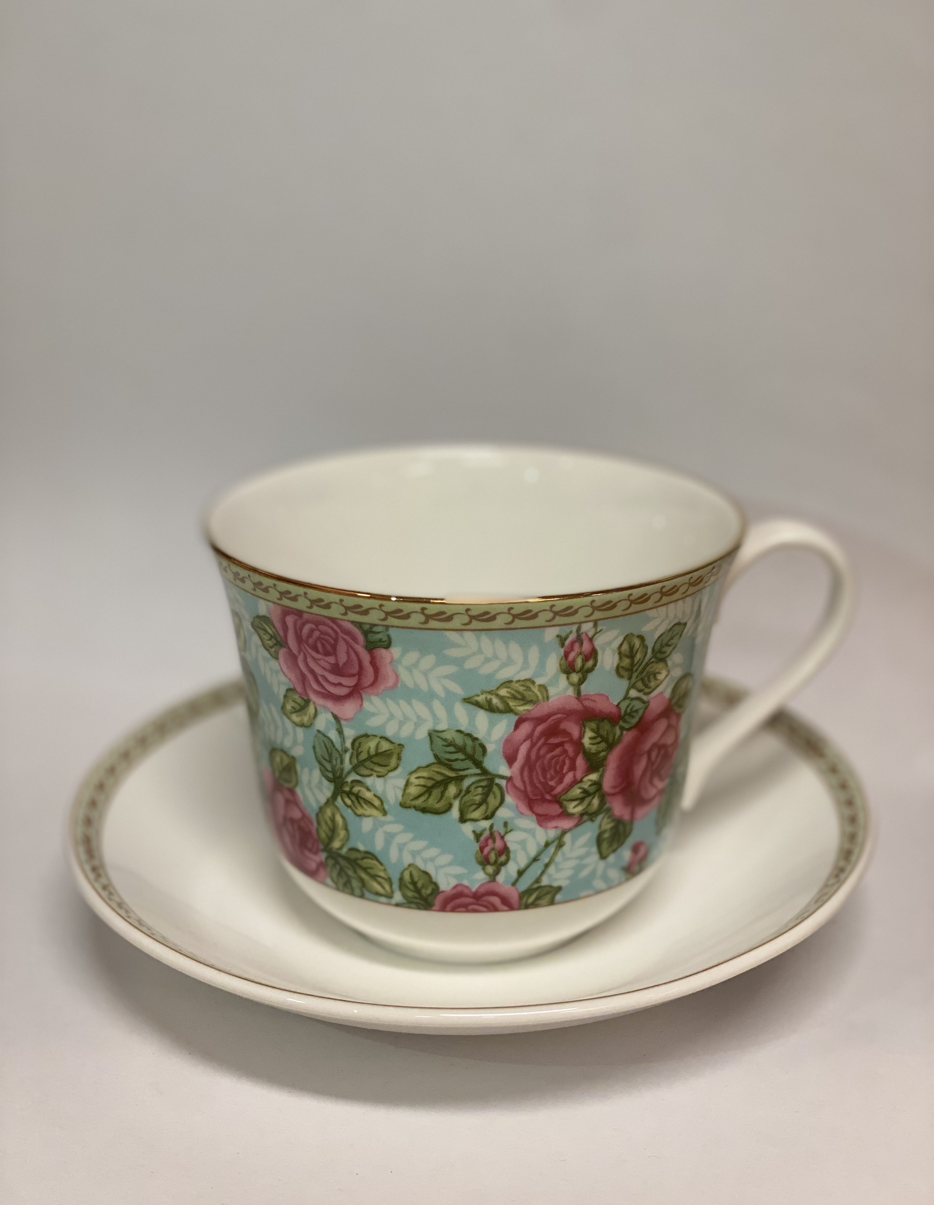 Lekker og delikat kaffekopp med fat fra Roy Kirkham. Klassisk og tidløst engelsk design med rose. Settet er laget av benporselen og er perfekt for de som liker å drikke av tynne kopper. Koppen rommer 0,45 liter og er god å holde i.