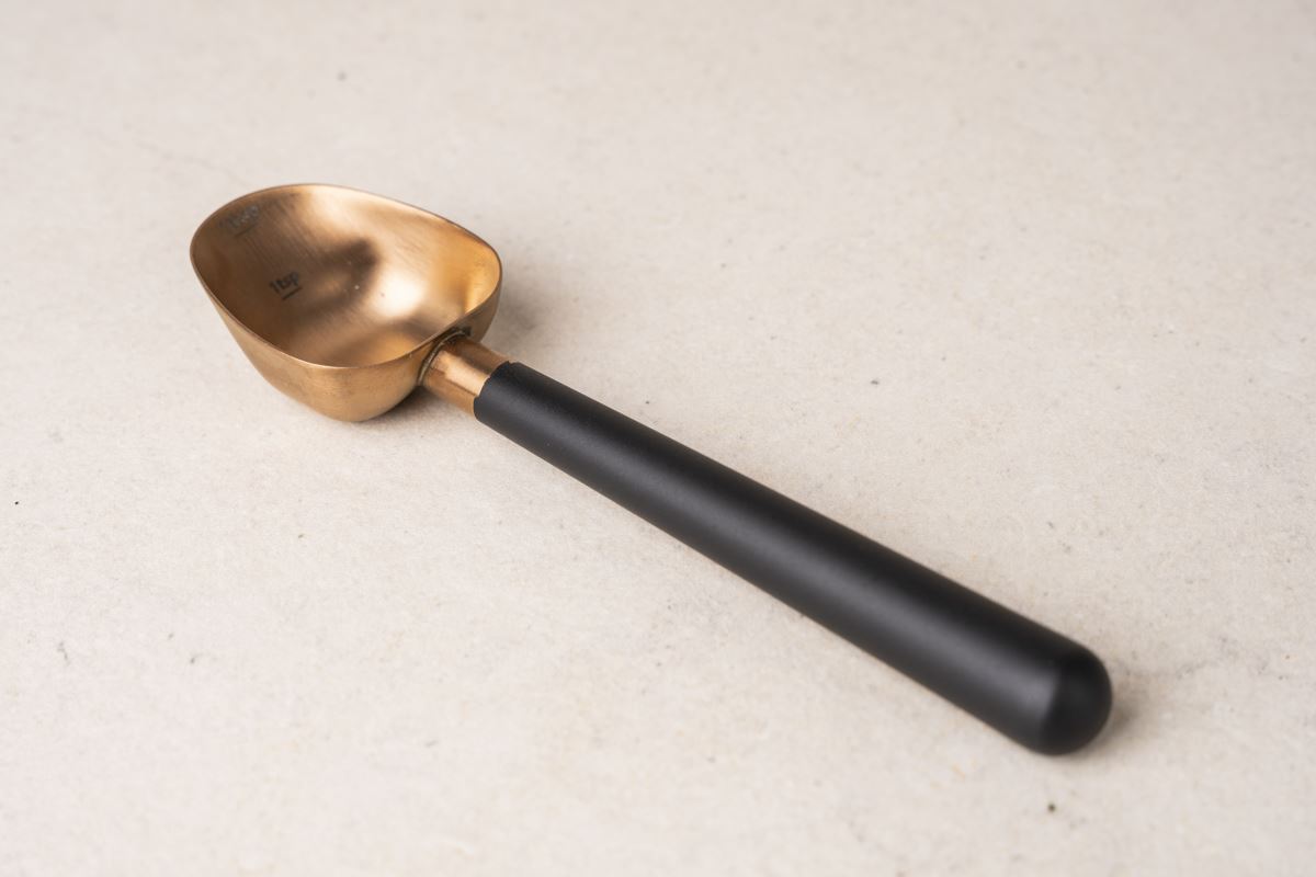 Måleskje for kaffe med ekstra langt skaft for en hygienisk uthenting av kaffen fra posen/boks.