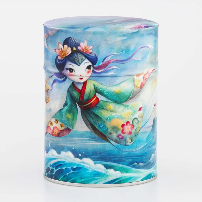 De vakreste teboksene dekorert for hånd i Frankrike. Boksene er dekorert med washi, en spesiell type papir fra Japan, og deretter glasert for en glossy finish. Boksene er helt tette da de kommer med doble lokk. Høyde 11,5 cm, diameter 8,3 cm.
