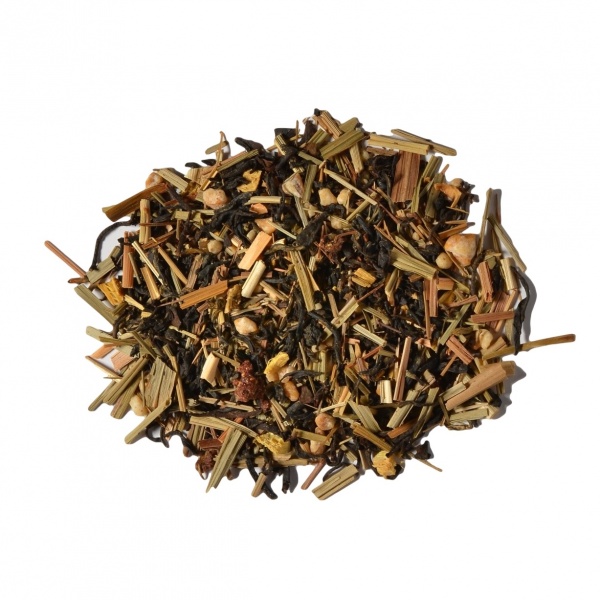 Inneholder kinesisk svart te (50%), hasselnøttbiter (tilsatt sukker), sitrongress, lakrisrot, aroma, bjørnebær, jordbær.