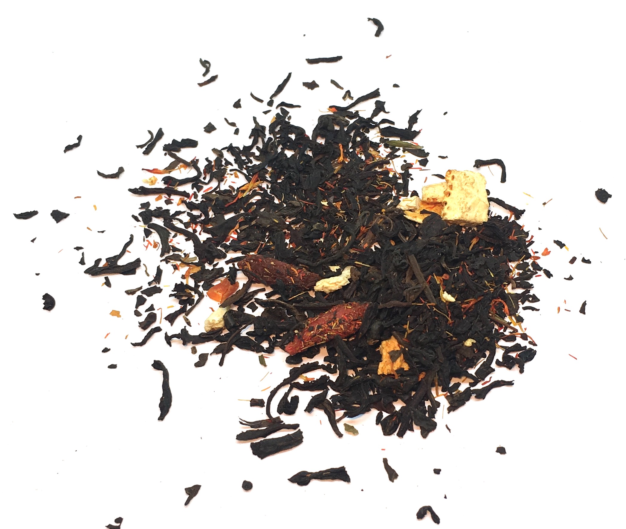 Inneholder svart te (71%), appelsinskall, gojibær, aroma, gulrot, gule roseknopper, og tistelblomst.