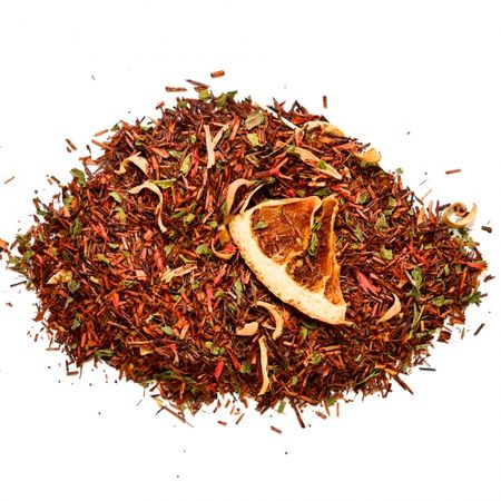 Inneholder rooibos, appelsinskiver, mint, aroma, appelsinblomst og tistelblomst.