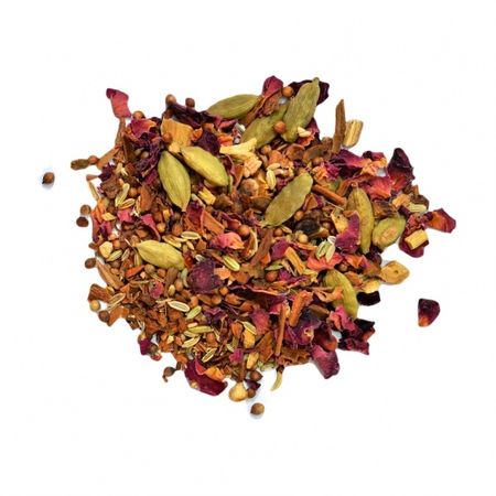 Inneholder kanel, kardemomme, lakrisrot, koriander, fennikel, ingefær og roseblad.