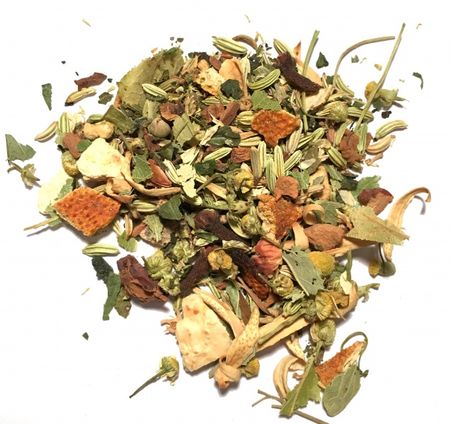 Inneholder fennikel, kamille, appelsinskall, eple, kanel, ingefær, lindeblomst, brennesle, villjordbærblad, appelsinblomst og nellik.