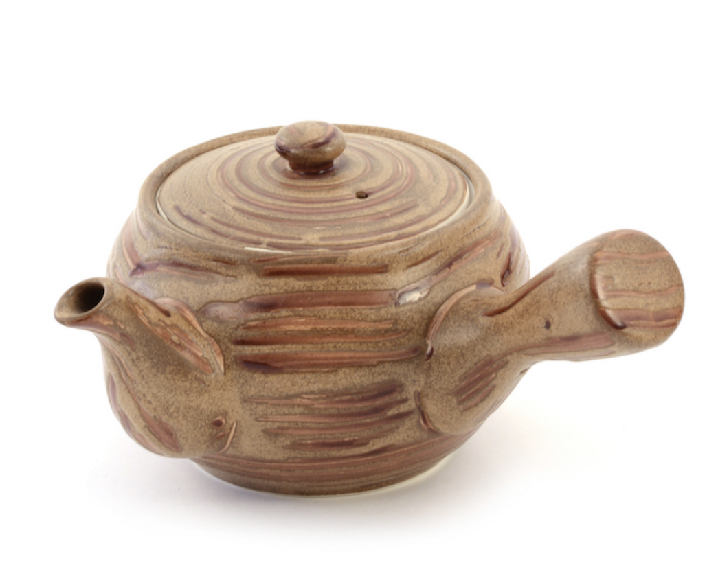 Tradisjonell røff kinesisk tekanne i keramikk med hanke på siden. Tekannen kommer med en rustfri tesil. Vi har også små kopper som matcher.