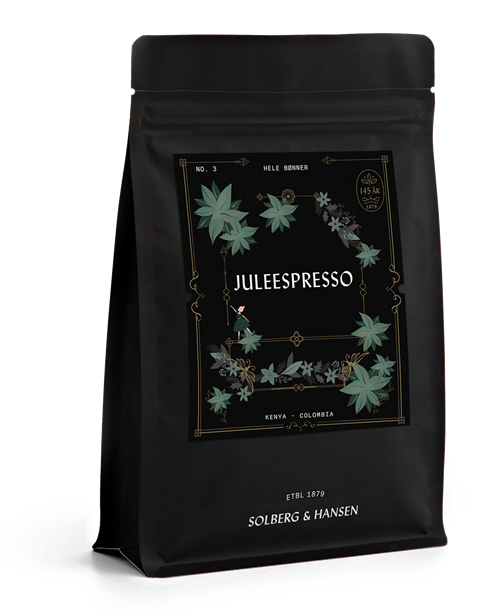 Årets juleespresso er en espressoblanding med våtforedlet kaffe fra Huila i Colombia og bærtørket kaffe fra Nyeri i Kenya. Juleespressoen smaker nydelig på espressomaskin og mokkakanne. Den kan også brukes på presskanne eller som kokekaffe.