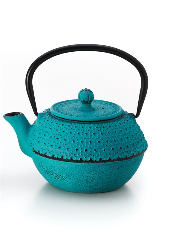 Nydelig jernkanne i støpejern. Grnn med svarte detaljer. Kannen tar 0.9 liter og kommer med en tesil i rustfritt stål. For å unngå rust er den emaljert på innsiden.