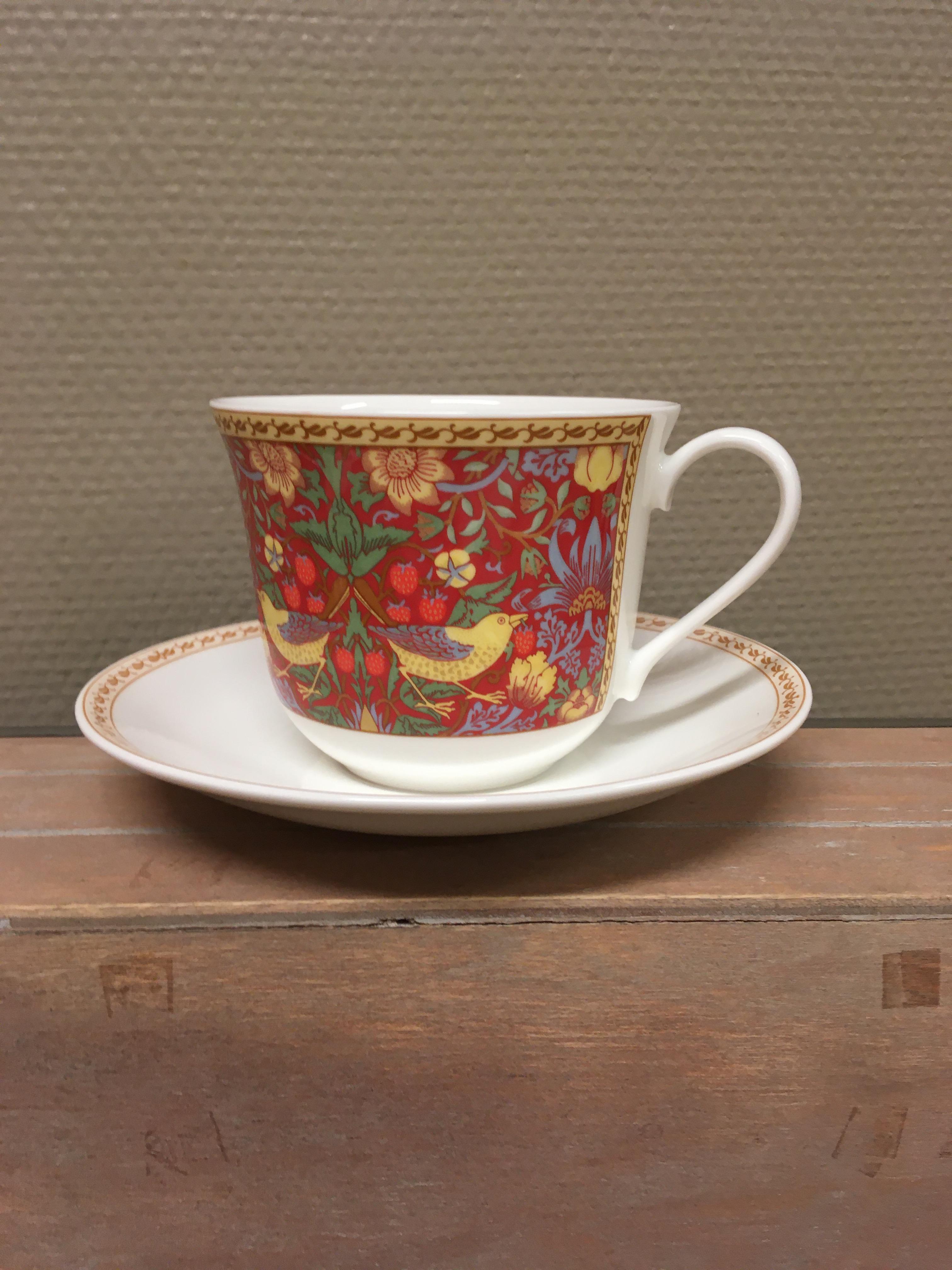 Tekopp med fat, Strawberry Thief Rød