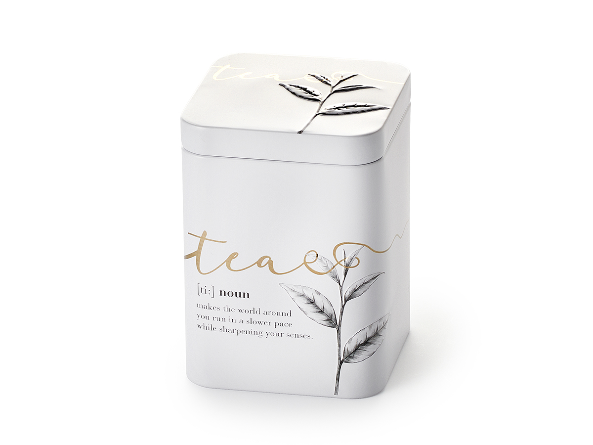En dekorativ teboks i metall for bedre oppbevaring av te. Boksen rommer ca 100 gram, litt avhengig av hvilken te den fylles med.