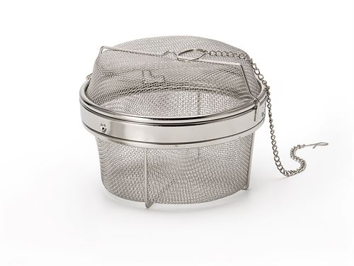 Stor teball som kan henges på kanten av koppen/tekannen. Diameter 13.2 cm. Teballen er laget i rustfritt stål og kan enkelt åpnes ved å vri på silens øvre del. Denne teballen er helt unik med sin store størselse og kan bukes for brygging av te i blant annet kjeler for større selskap. Den kan også tas i bruk for "tebading".