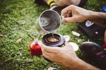 Liten og bærbar kaffebrygger, tar liten plass i sekken.