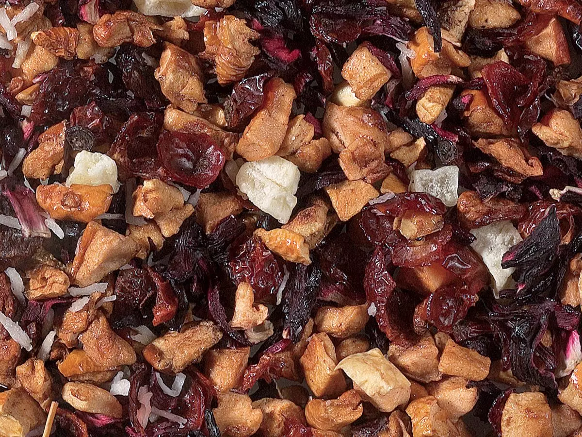 Piña Colada er en tropisk fruktte med smak av kokos og ananas. En eksotisk og fruktig opplevelse som også kan blandes med grønn te eller rooibos.Inneholder: Eplebiter, hibiskus, nype, ananasbiter (ananas, sukker), kokos, aroma. Trekk Tid: 100 °C | 5–10 min | (12g) 4–5 ts pr. l