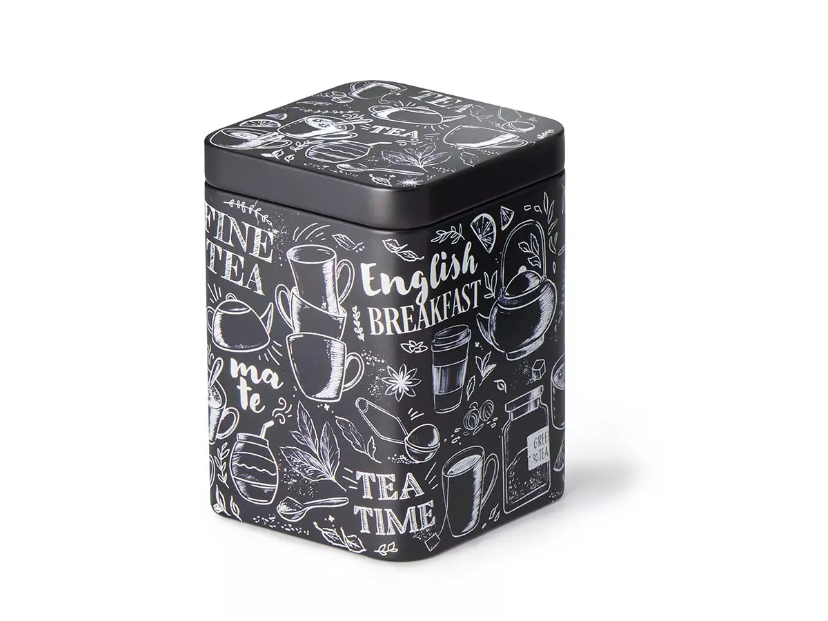 En dekorativ teboks i metall for bedre oppbevaring av te. Boksen rommer ca 100 gram, litt avhengig av hvilken te den fylles med.